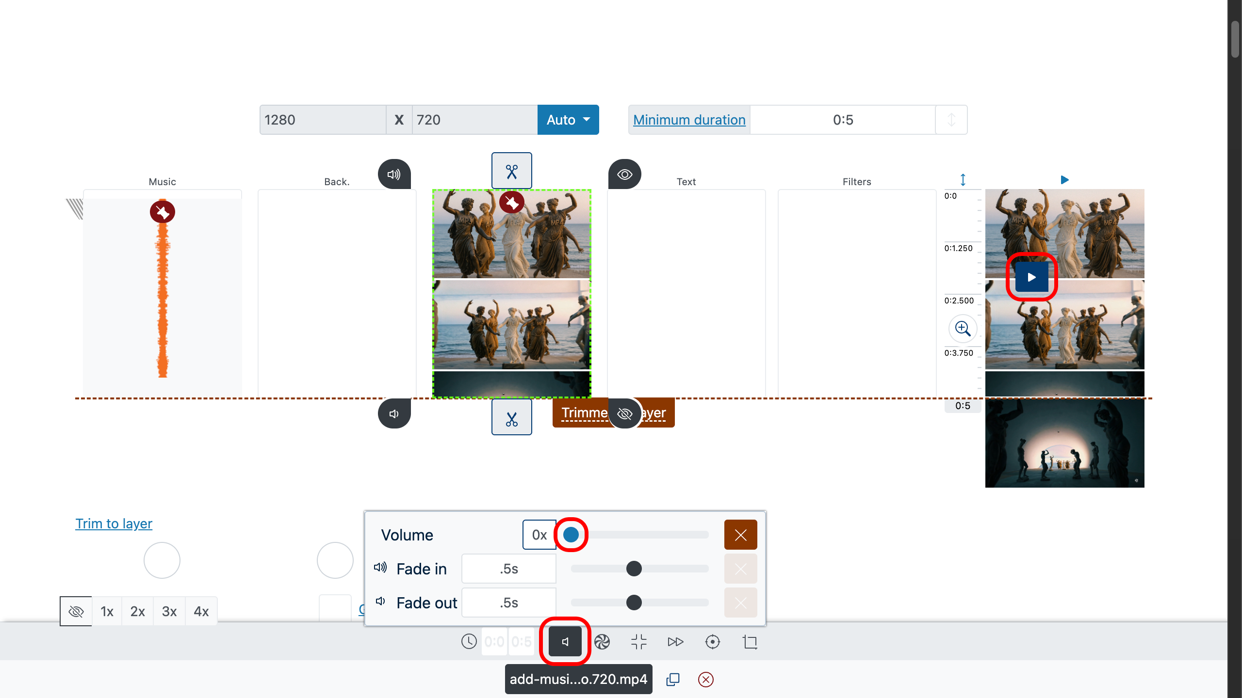 - Ορίστε την ένταση του αρχικού βίντεο στο 0.